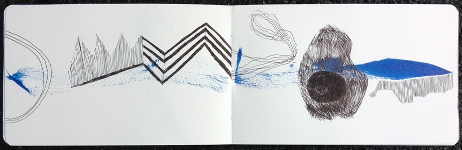 Revisiting an older sketchbook and adding new drawings onto old ones. This time the blue mark was old.