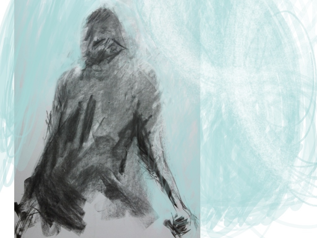 Another haunting sort of figure-like picture. Is it just me that gets tingles from some of these? Anyway, you already seem to be a master of coaxing natural-feeling textures from digital media, but I love how you combine the paper-based drawing with the computer to get some real crunch on this one.