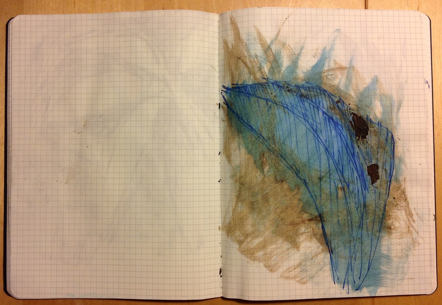 Drawing in glasshouse at Kew gardens, includes bark that was drawn with.