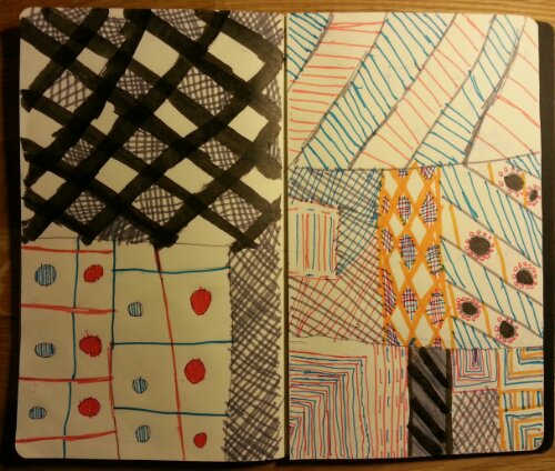 My daughter made use of my sketchbook this week. I love the pattern combo x