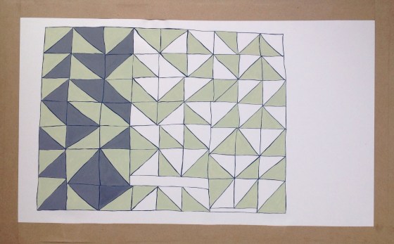 Inspired by pirates (cornwall connection) I have been thinking about flags and in connection to folk I have looked at the quilts of Gee’s Bend. This drawing is inspired by a quilt maker: Loretta Pettway who used cottons and used mens clothing to make this particular quilt in 1960.