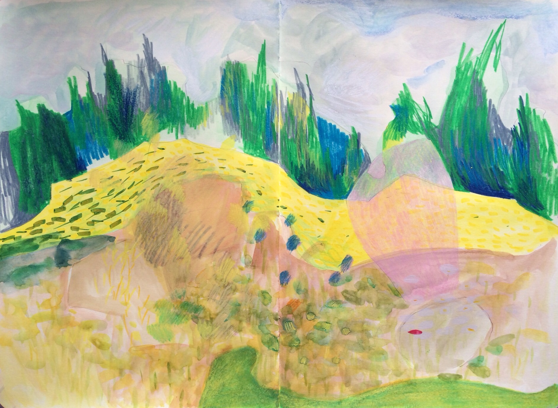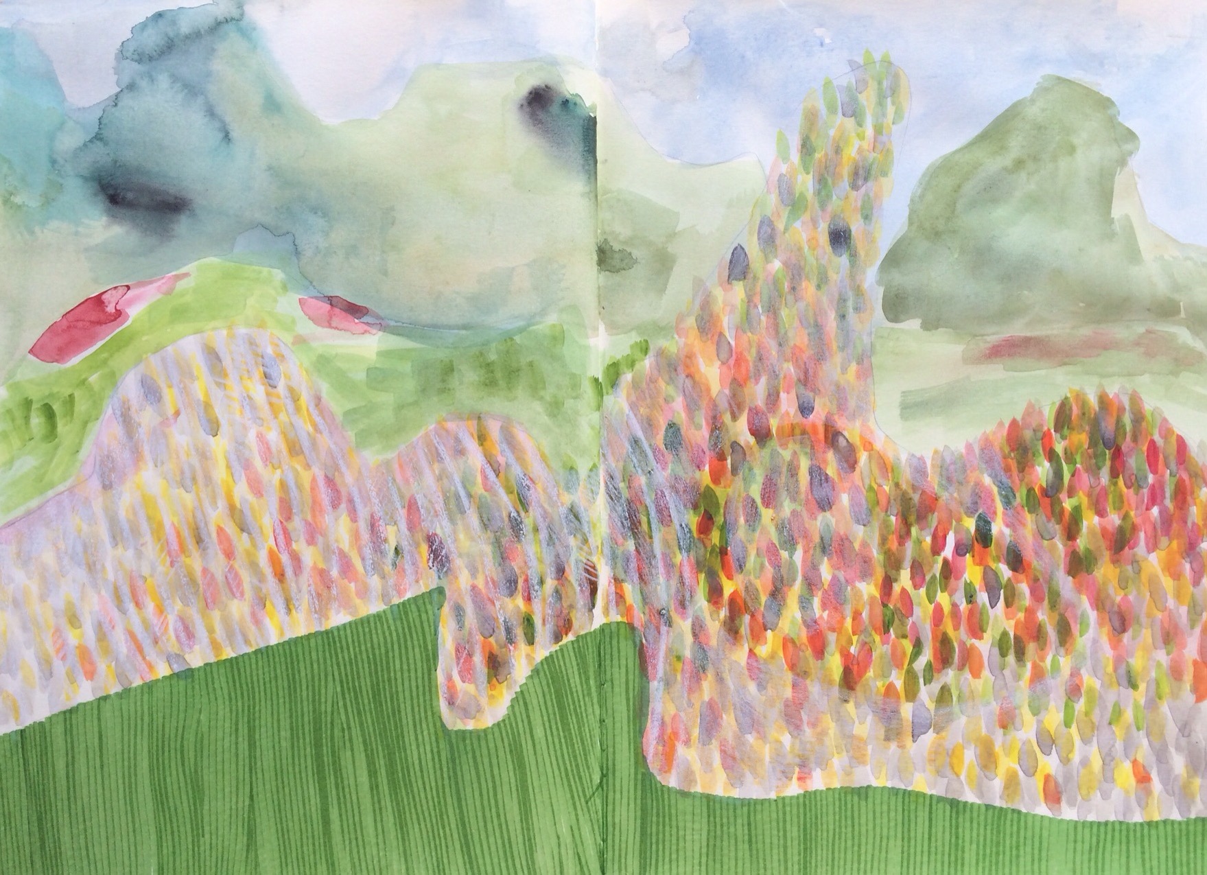 Posted in > 60 min, A2, paper Tagged art, dailydrawing, Drawing, folk, Landscape, markmaking, Painting, pattern, sketchbbok, textiles